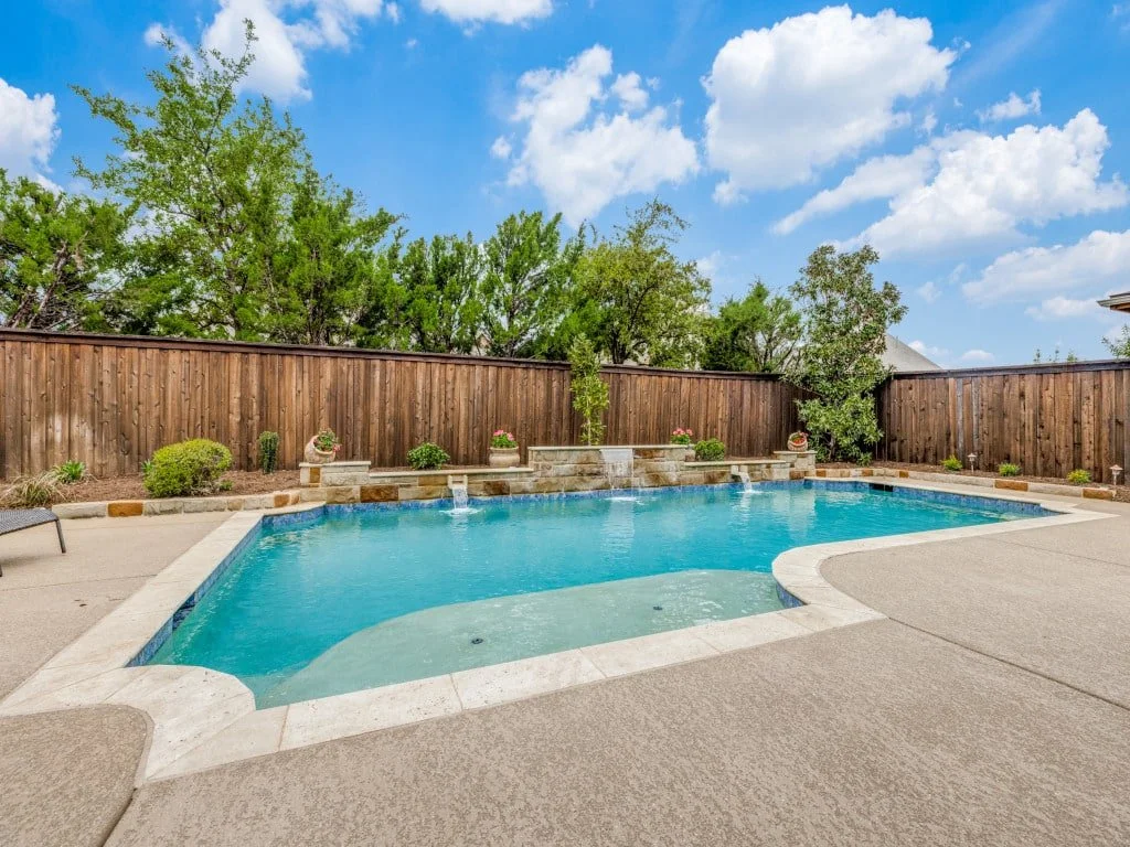 Resort style backyard with pool, outdoor kitchen & pergola.