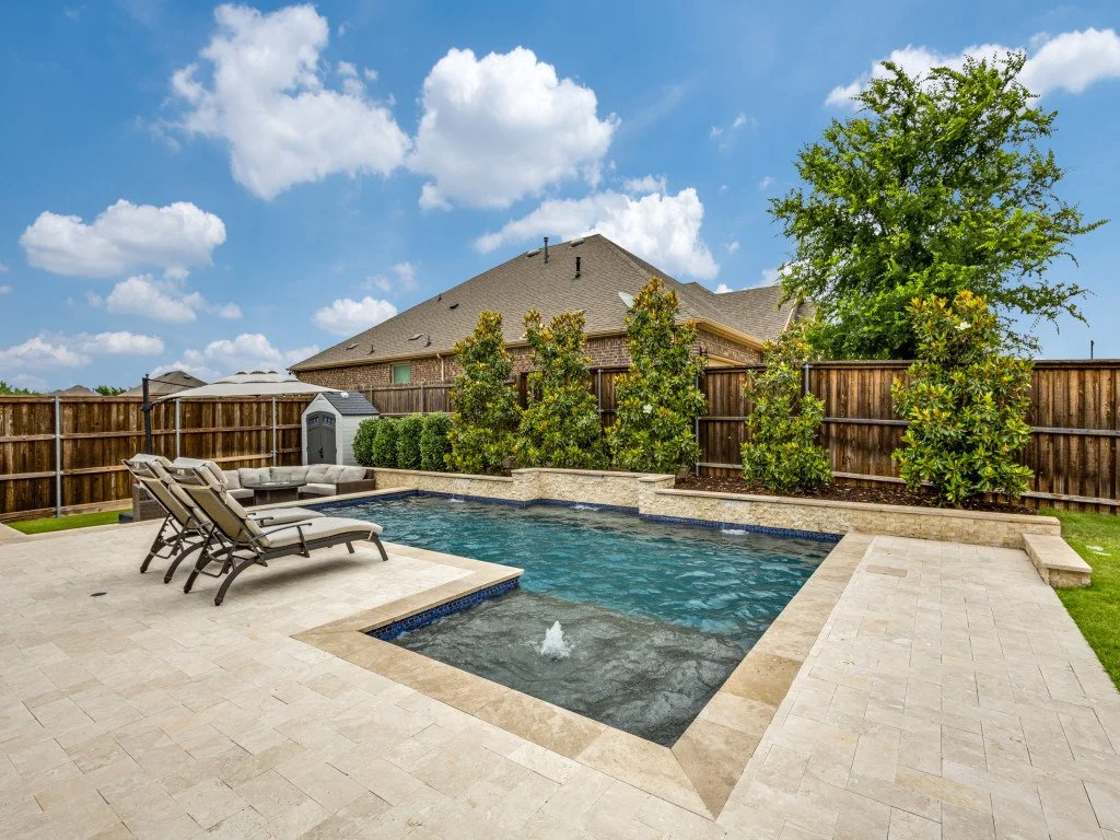 4. $100k backyard oasis with 3-year old gunite pool, travertine decking, and landscaping. Storage shed in the backyard included