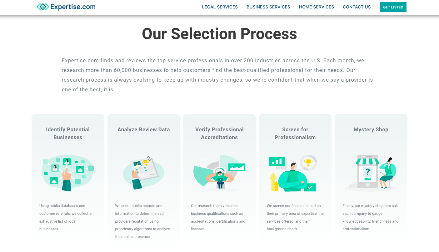 Here is a page from the Expertise.com website showing the difficulty in the selection process and how they select their top candidates.